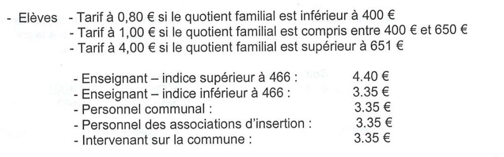 Tarifs restauration scolaire pour l'année 2025 -2026