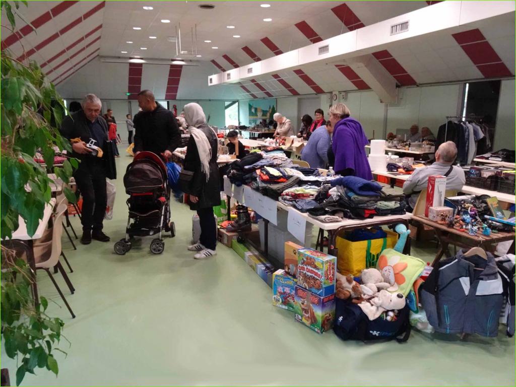 Les exposants confortablement installés à l’abri des intempéries (à cette saison, c’est préférable) attendaient chineurs et visiteurs qui ont parfois bravé la pluie pour se mettre à la recherche de la perle rare. A noter qu’à l’entrée de la salle, de très jolis objets (sacs, ballons, cartes…) réalisés par les doigts agiles des adhérentes de la section Loisirs Créatifs étaient proposés à la vente au bénéfice du Téléthon. Bravo aux bénévoles de l’ASCF pour leur implication active dans cette journée.