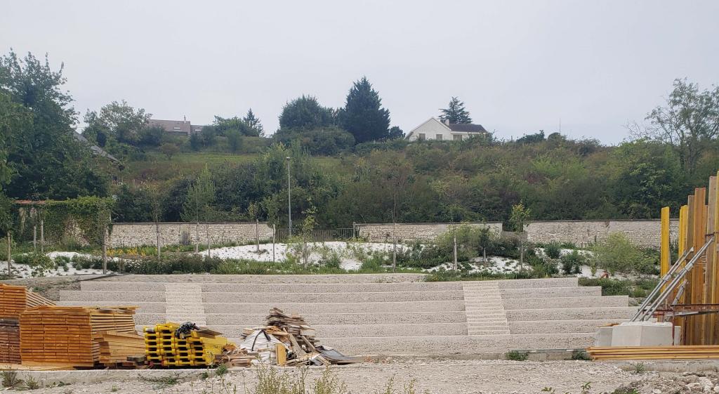 Les gradins, aujourd’hui entièrement terminés, dégagent une élégance sobre, ancrée dans le paysage. Les murs de la halle prennent à présent forme. Ils se révéleront bientôt quand les planches de coffrage seront enlevées découvrant ainsi une architecture ancienne et aussi contemporaine. L’ensemble devrait être fini au mois de décembre.