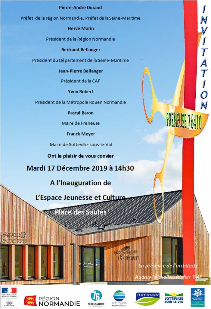 Mardi 17 décembre 2019 à 14:15 Tous les habitants sont invités à l'inauguration de l'Espace Jeunesse et Culture sur la Place des Saules
