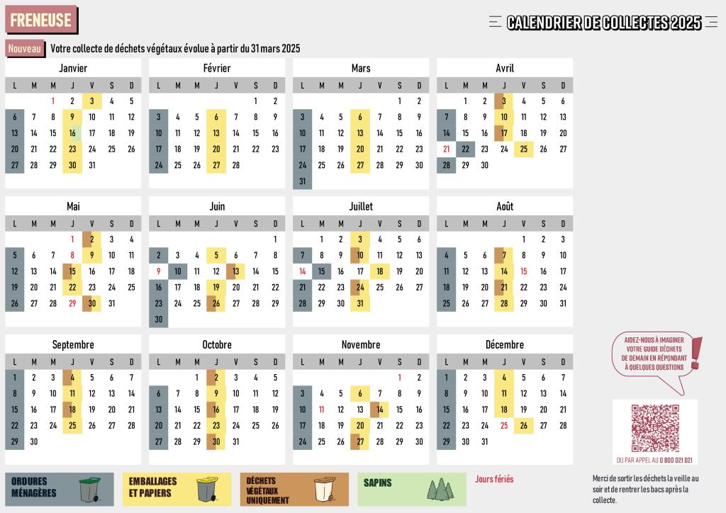 | Précision : De décembre à mars inclus, le ramassage des déchets verts ne s'effectue qu'une fois par mois. |